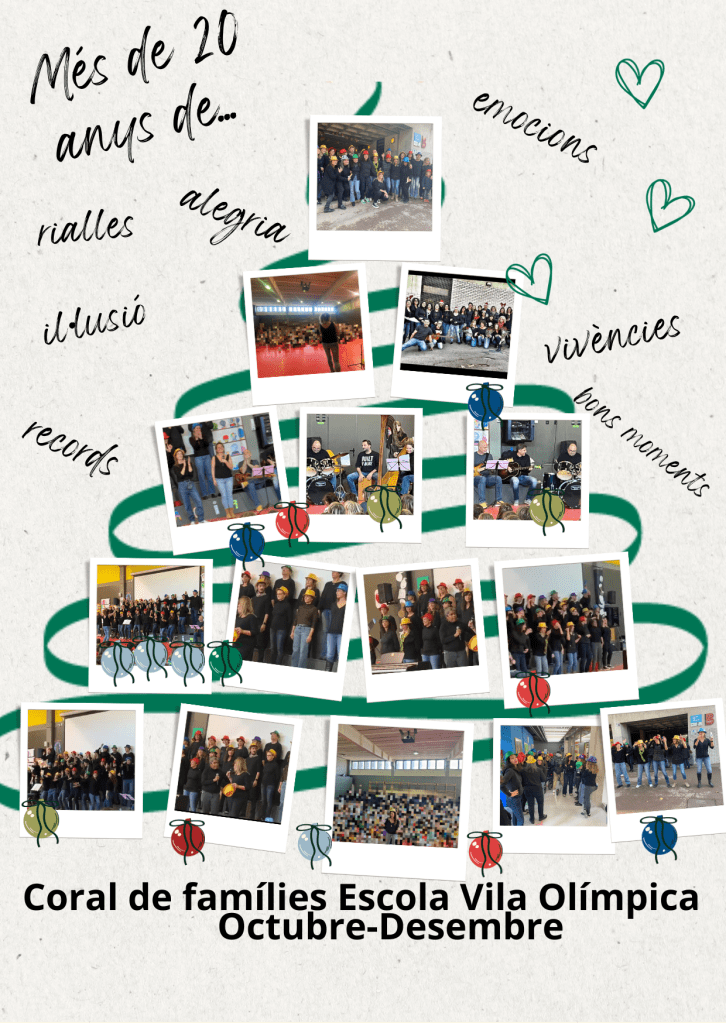 Cada curs és diferent i els i les cantaires anem, venim o ens perpetuem durant tota l’escolaritat dels nostres infants. Sigui com sigui, preparem amb il·lusió i alegria un concert únic, exclusiu, irrepetible, màgic i ple d’emocions que només es fa una vegada, a porta tancada, per temps de Nadal.
