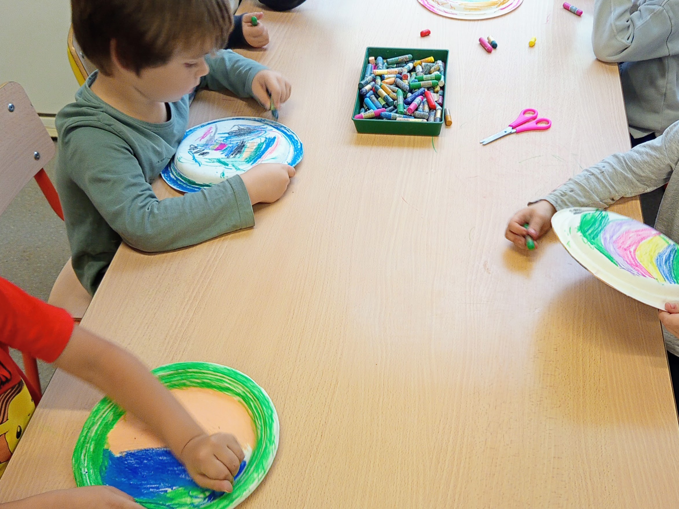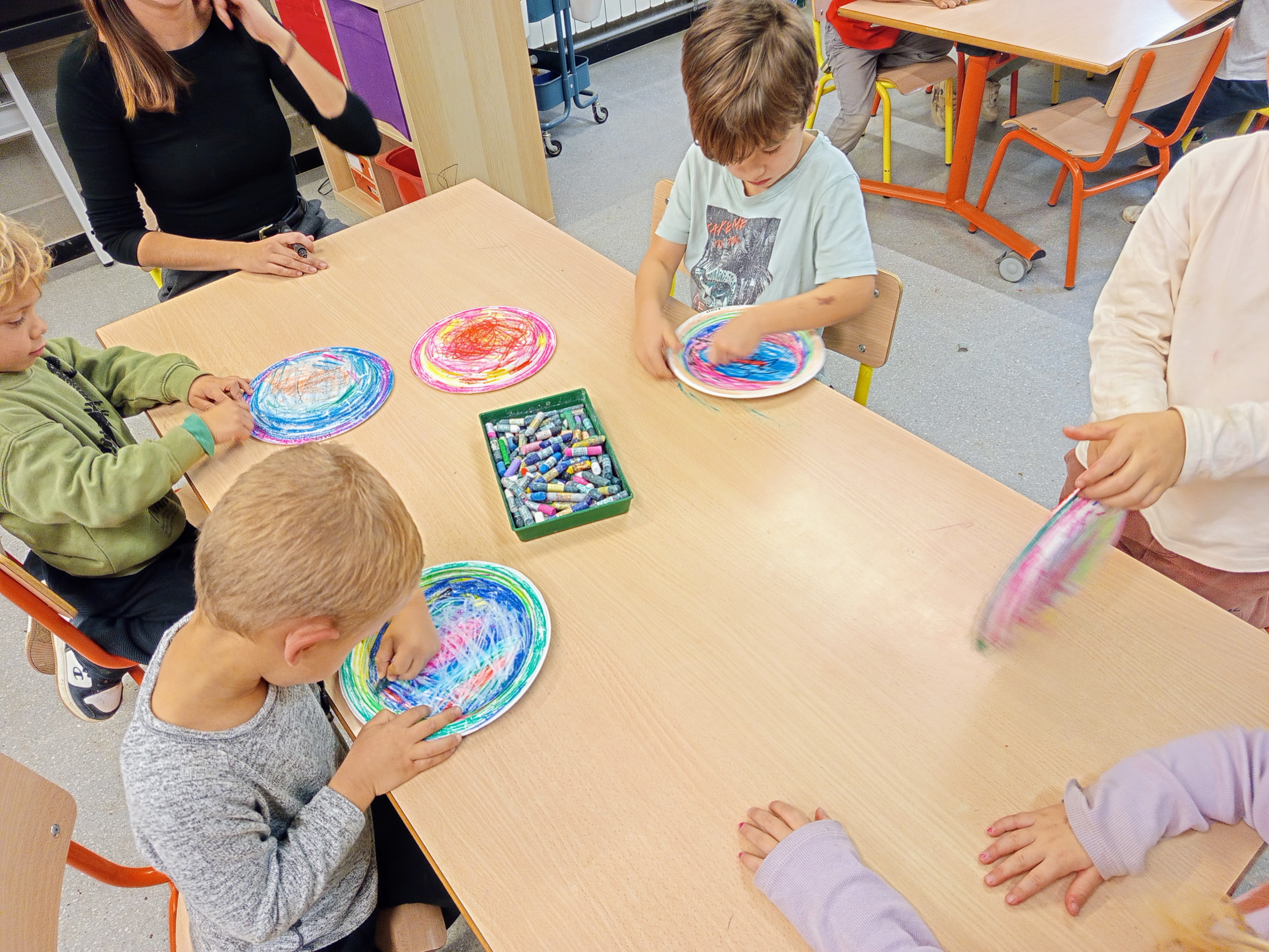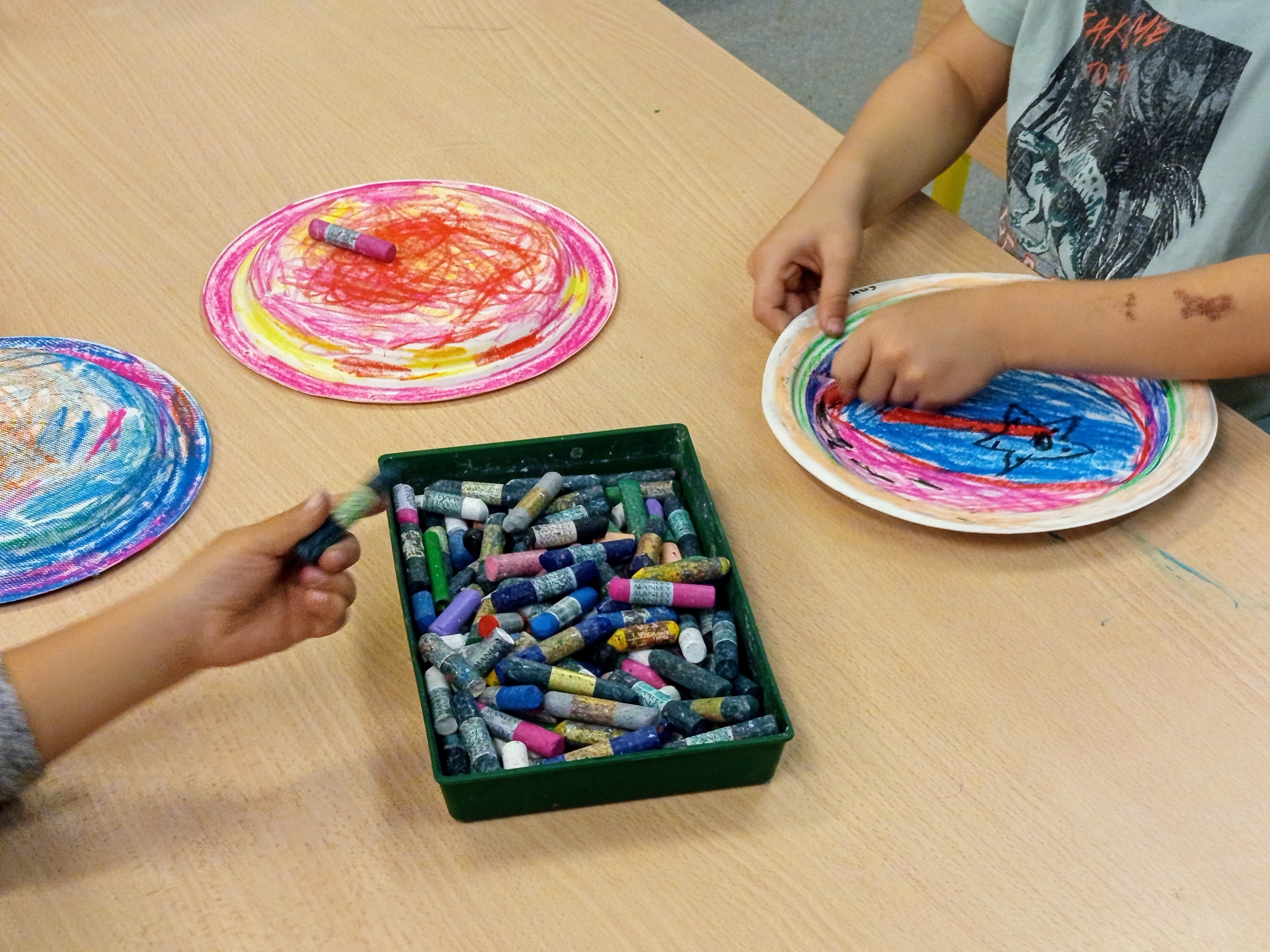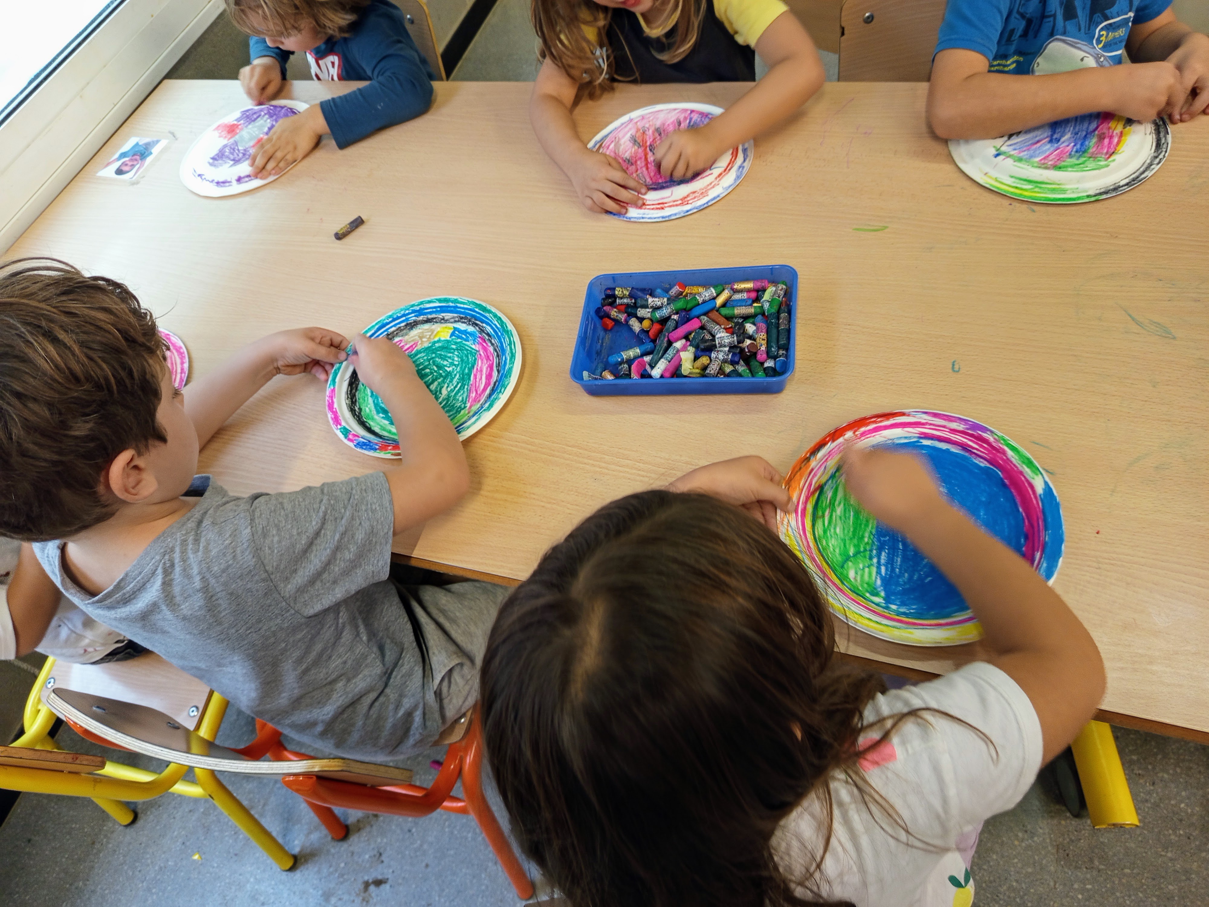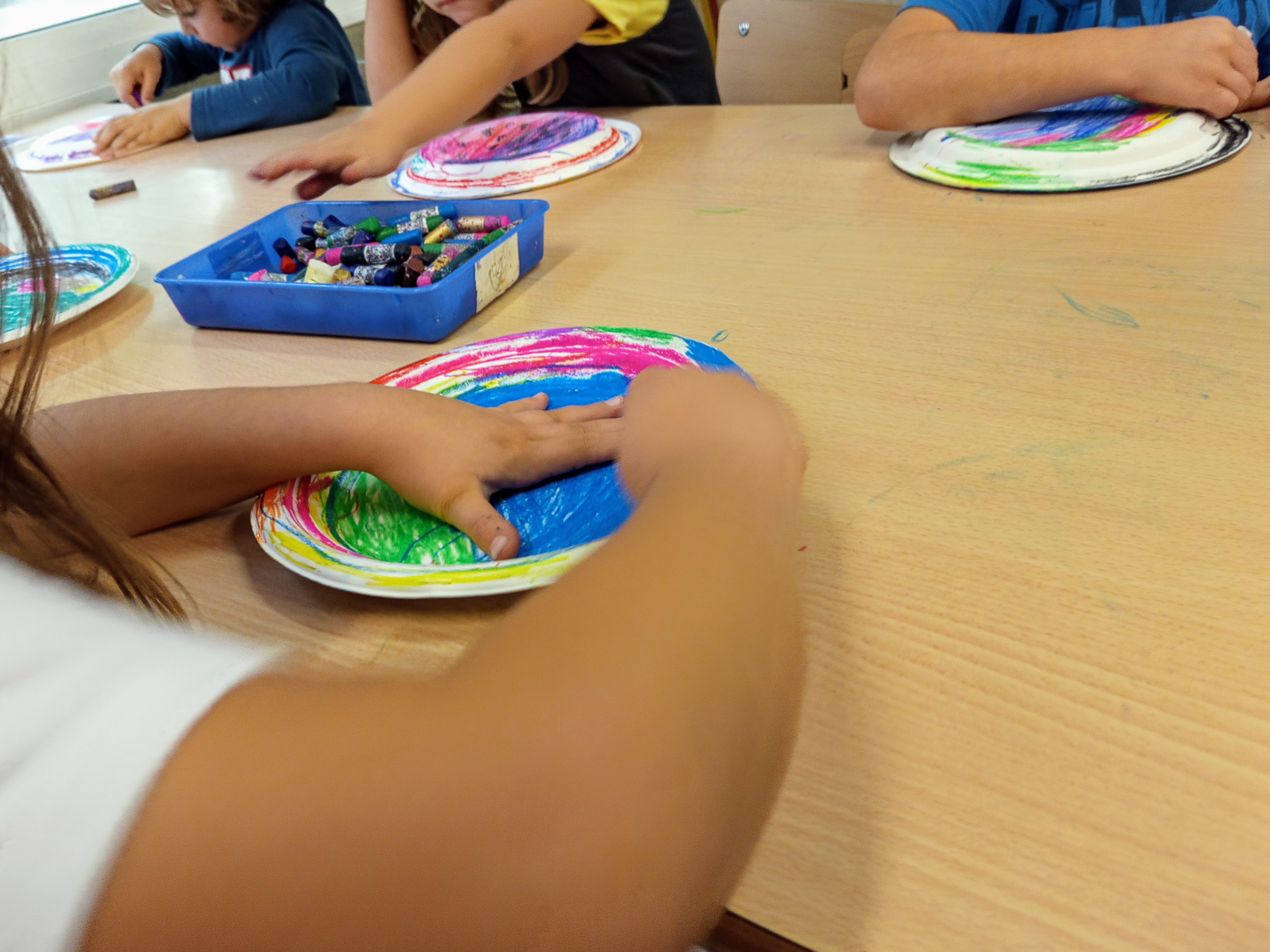 Aquesta activitat lúdica i lliure ofereix als infants experimentar gaudint del procés artístic i de les seves produccions plàstiques fetes amb materials reciclats.
